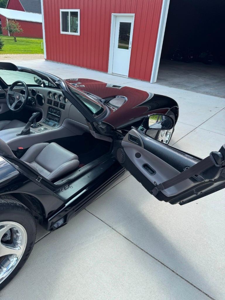 VIN 1B3BR65E9RV102176—a true American icon and the epitome of 90s muscle.This example features the desirable black-on-black color scheme, with a black exterior and black interior. It has approximately 56,000 miles and comes with a clean title. As one of the early Vipers, it embodies raw machismo—no ABS, traction control, or airbags—but includes factory air conditioning (a first for 1994 models). The convertible top is original and functional, perfect for open-air cruising.
