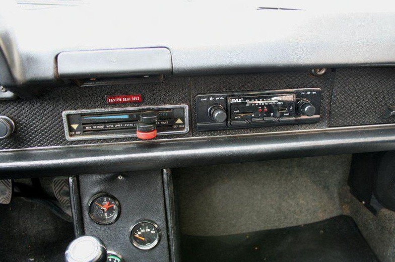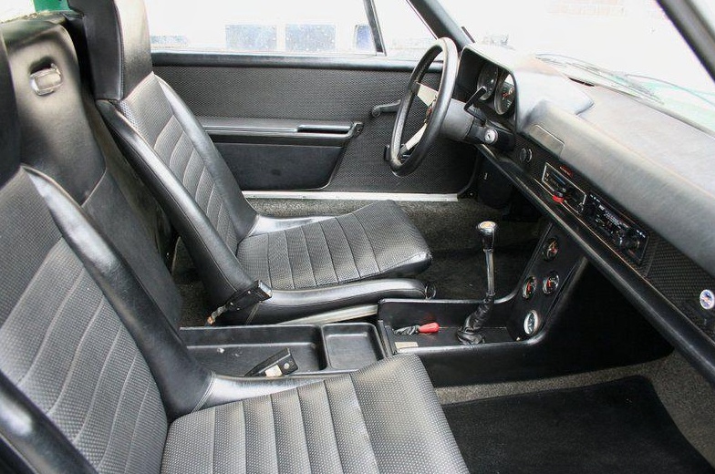 Interior: Black leather seats showing character consistent with age. Dash and instruments intact.