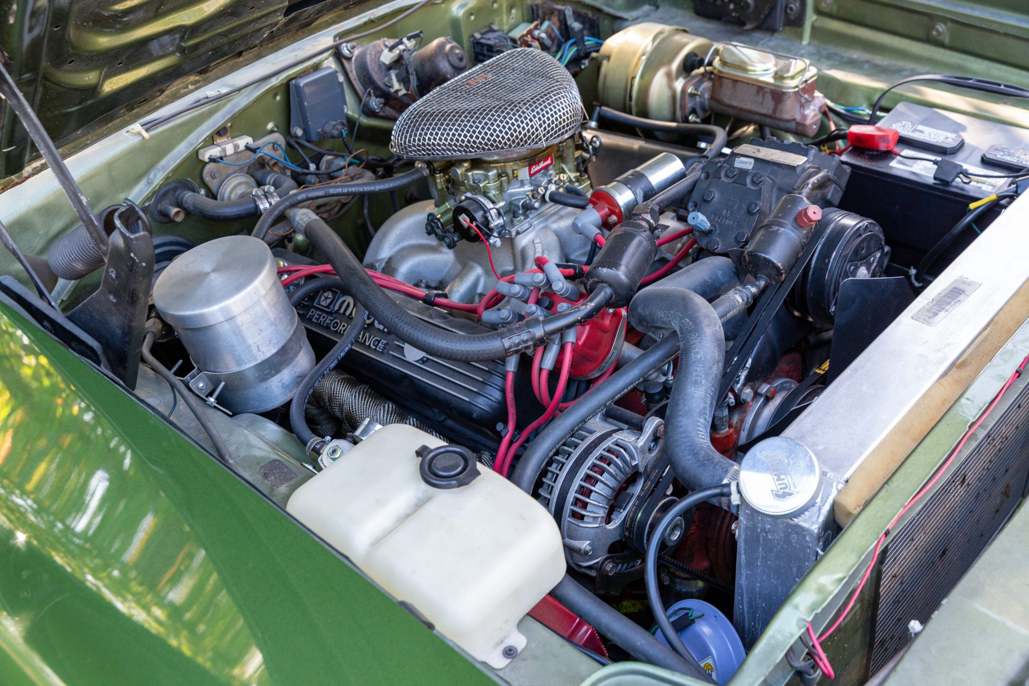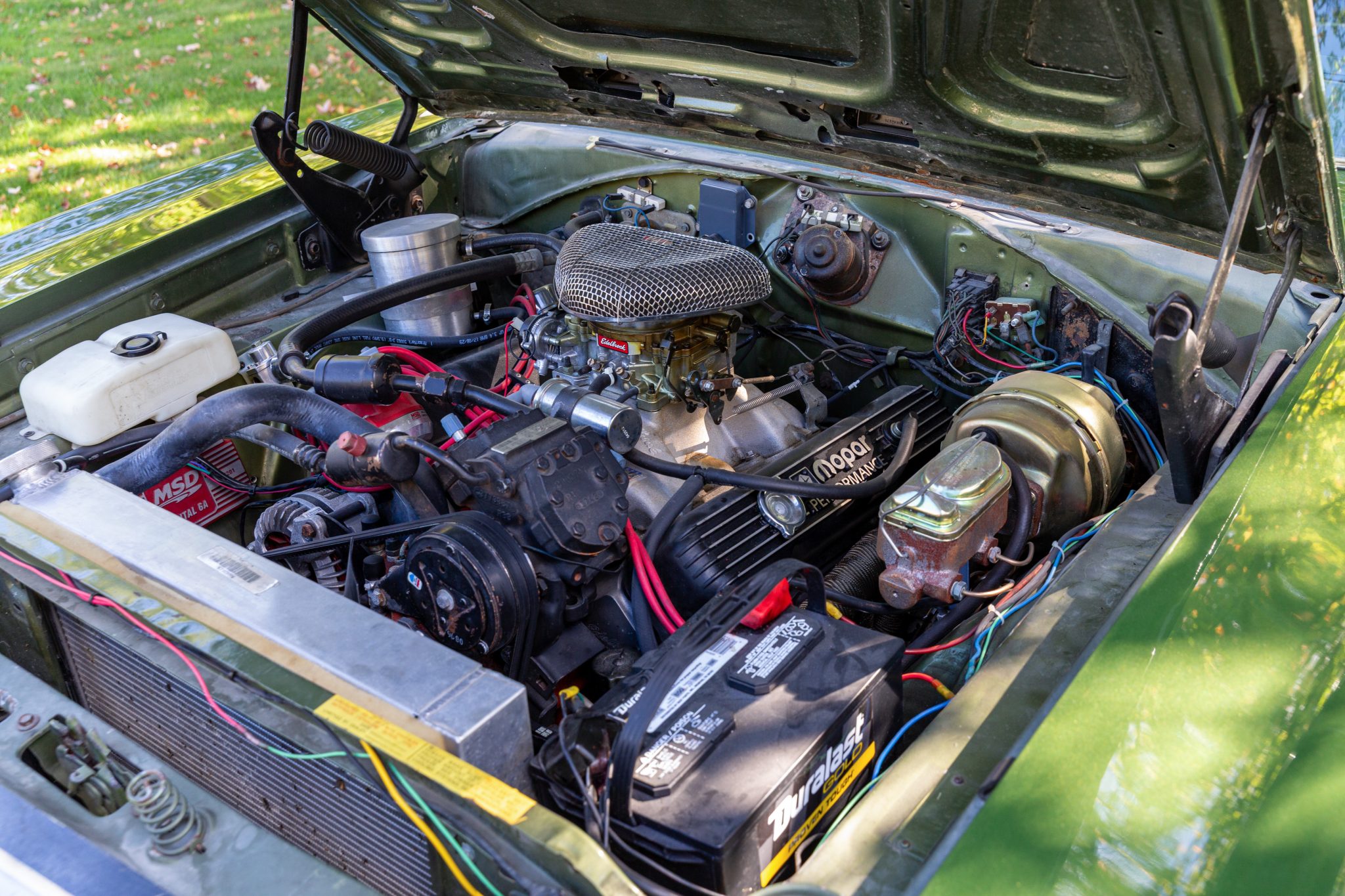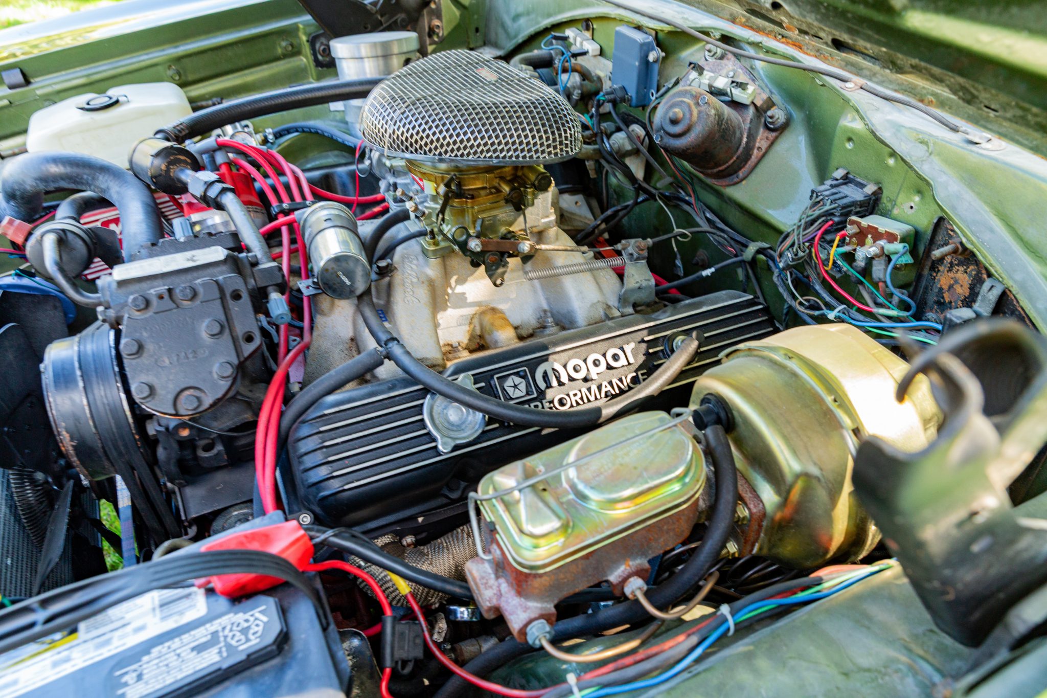 The 440ci V8 was bored up to .060″ over and rebuilt in August 2010 by Weber Power Products of North Ridgeville, Ohio, before being installed in this car. Modifications include: